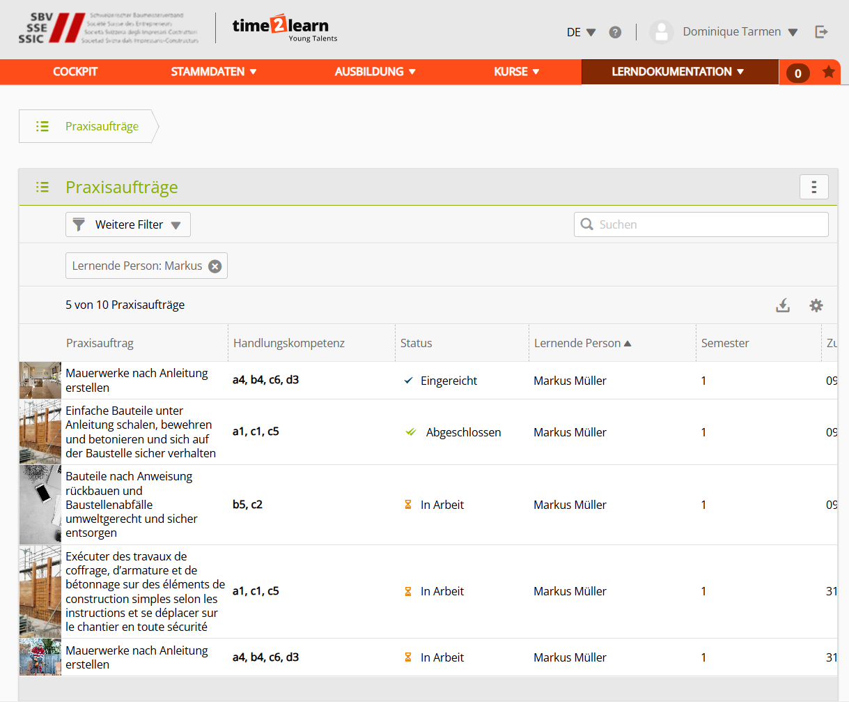 Die Kurstrainer haben nur Einsicht in die Dokumentation der Lernenden, nicht in die Bewertung der Berufsbildenden. Sie können nichts an den Daten ändern.
