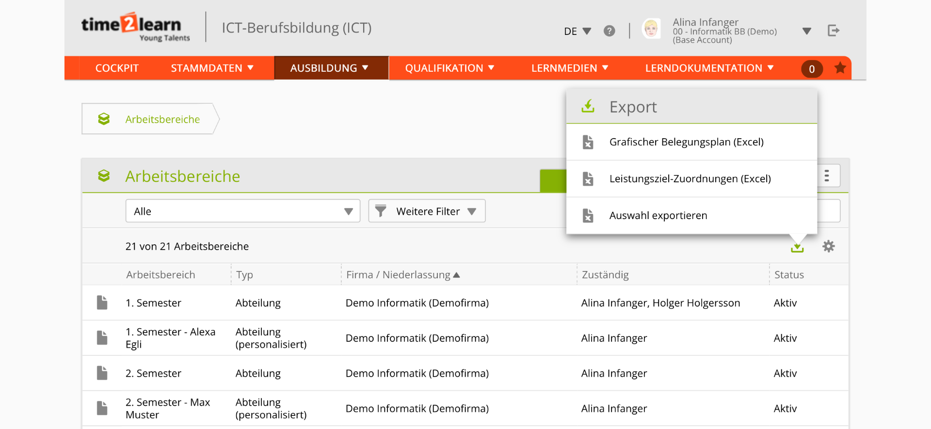 Dank der Export- und Reporting-Funktionen in time2learn kannst du auf Knopfdruck analysieren: