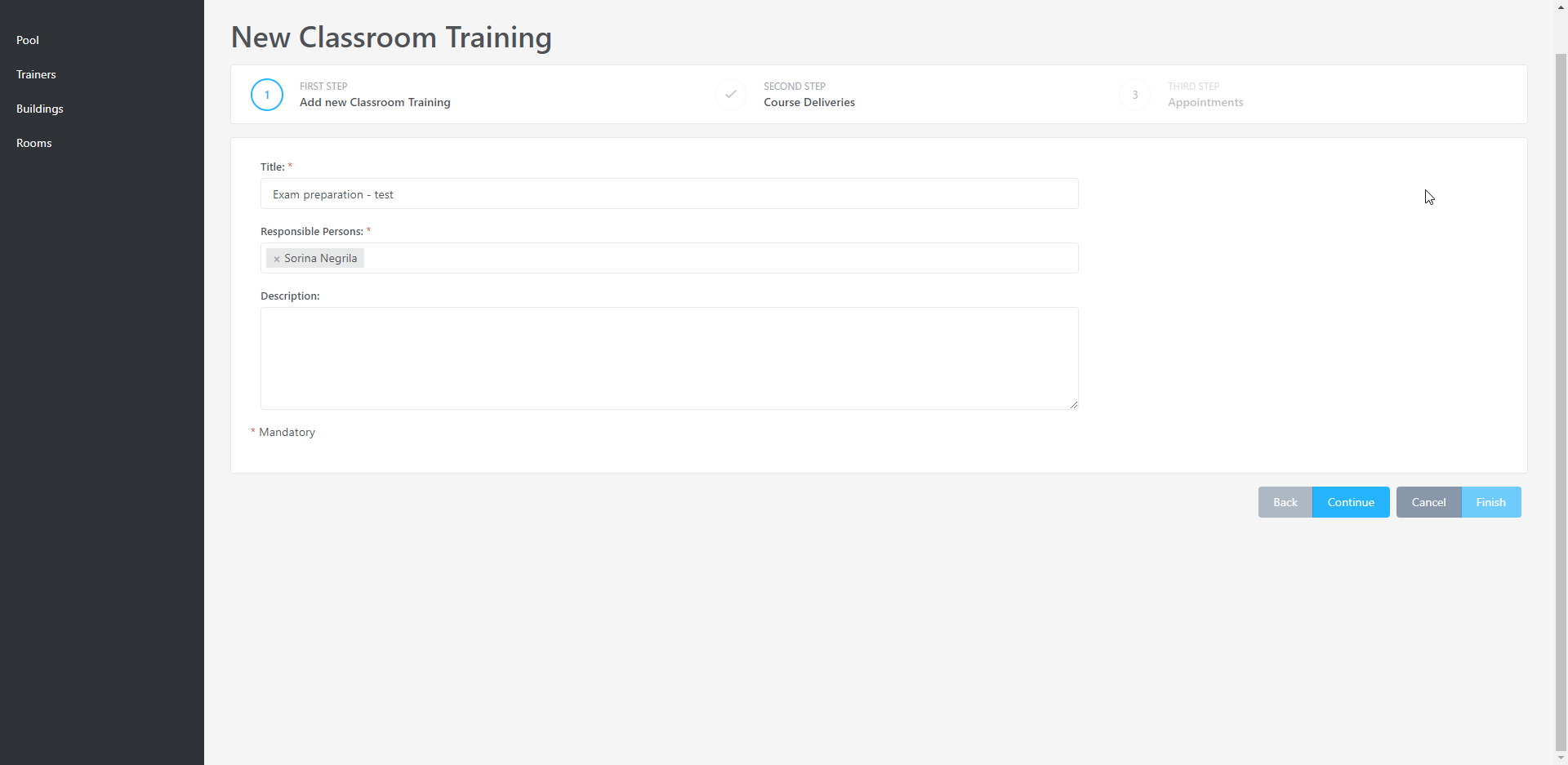 Für den Präsenzkurs muss mindestens eine Durchführung mit folgenden Angaben erstellt werden: