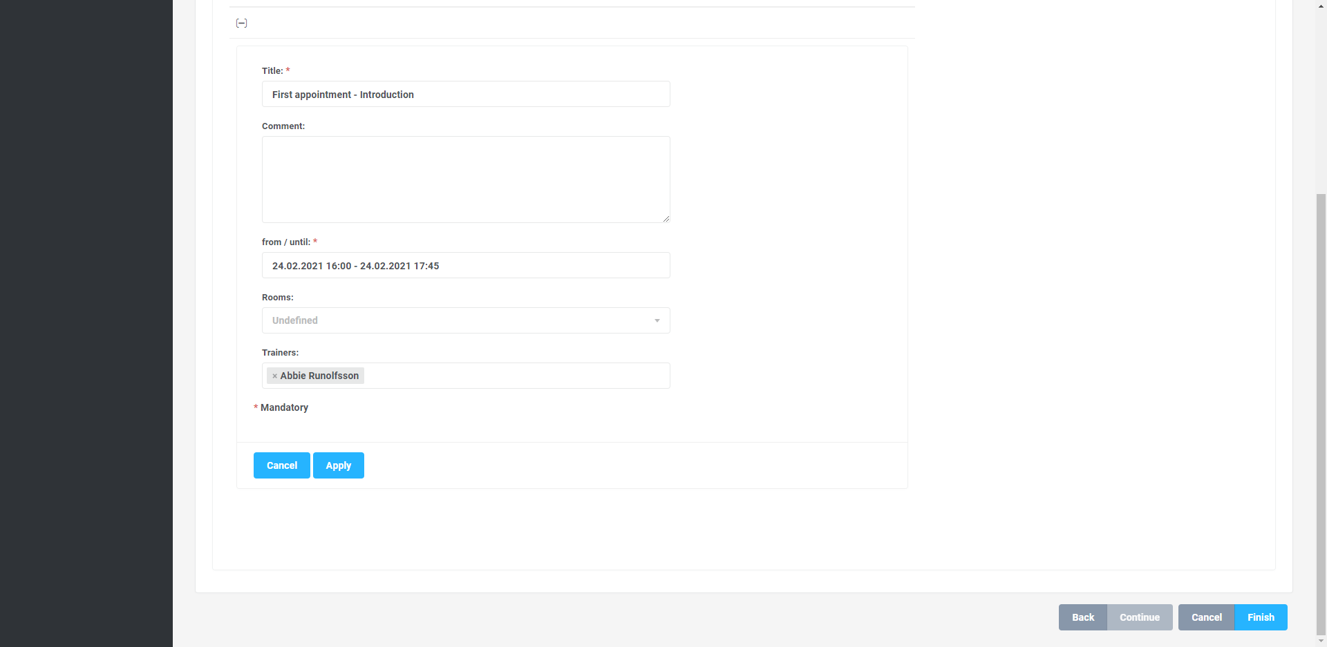 - Datum des Termins: Es wird empfohlen, bei mehrtägigen Präsenzkursen für jeden einzelnen Tag einen Termin anzulegen - dies ermöglicht eine einfachere Verwaltung, indem z. B. die Zeit oder der Ort eines einzelnen Tages geändert werden kann, ohne den Rest der Serie zu beeinflussen.