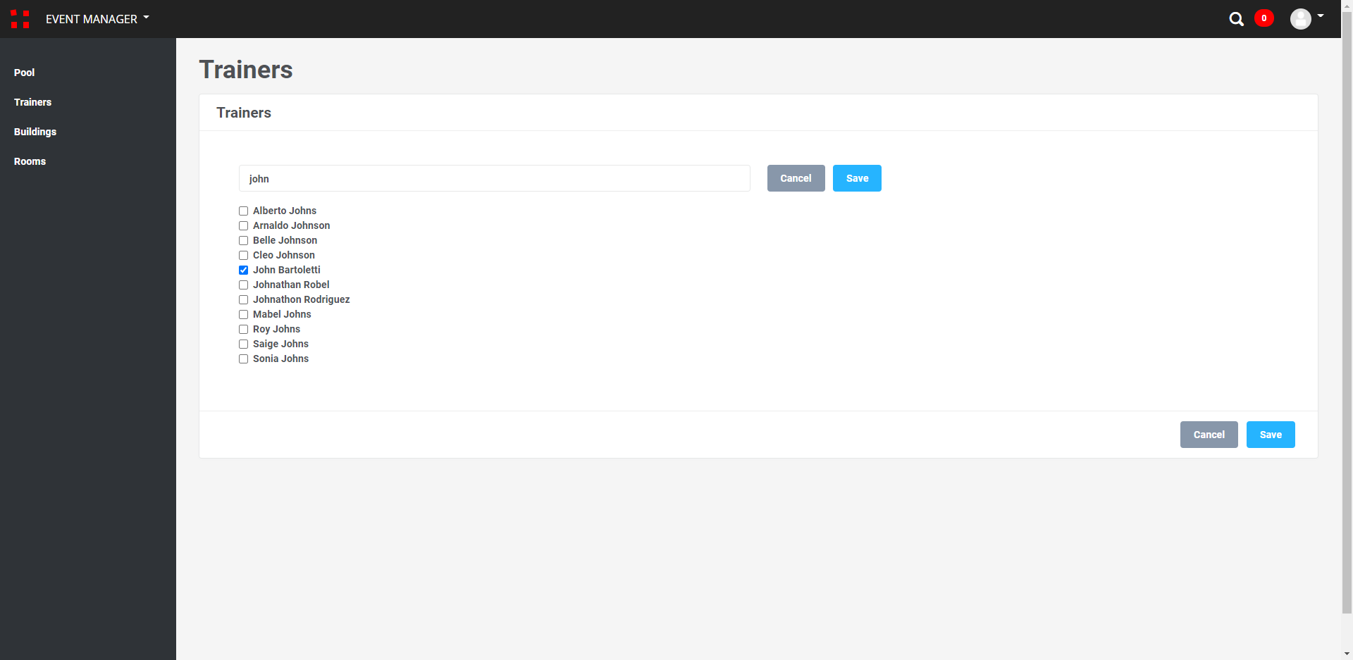 Um eventuelle Terminkonflikte für Räume oder Dozenten zu erkennen, die in den verschiedenen Schulungen beteiligt sind, werden diese im Event Manager zentral verwaltet.