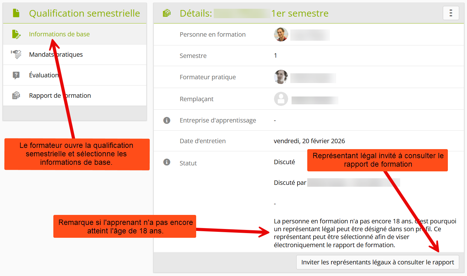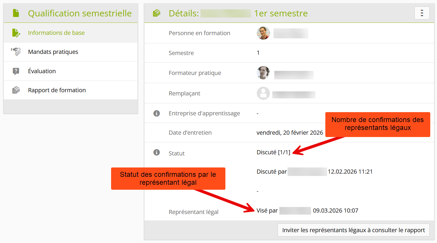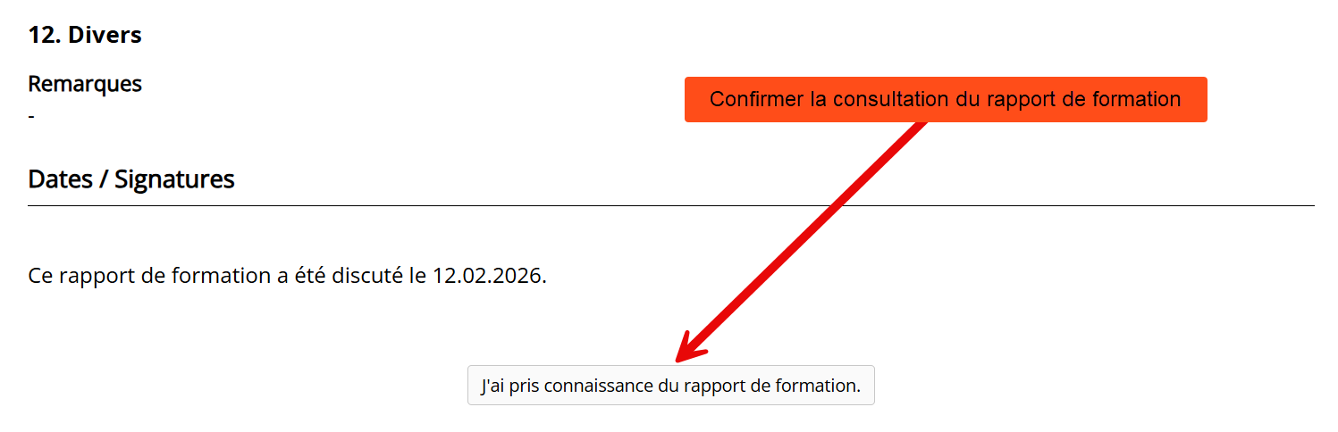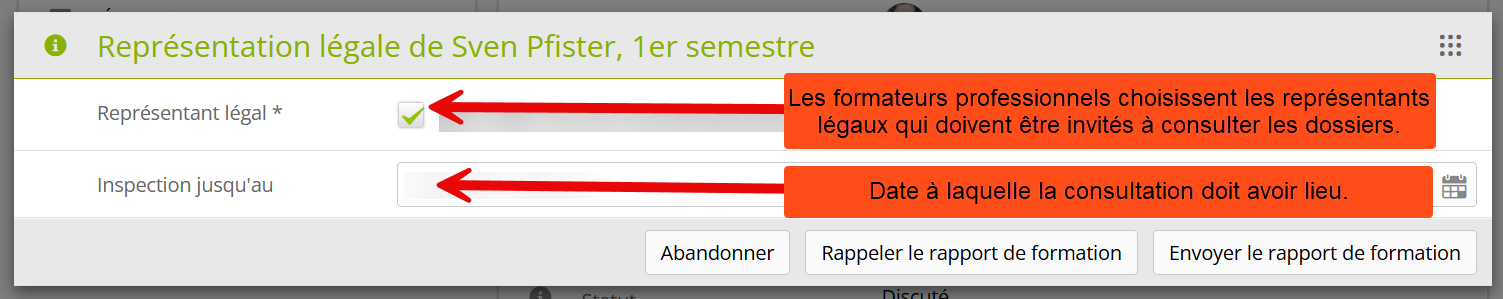 Les représentants légaux ont désormais la possibilité de consulter et de valider électroniquement un rapport de formation discuté sans avoir à se connecter eux-mêmes. :