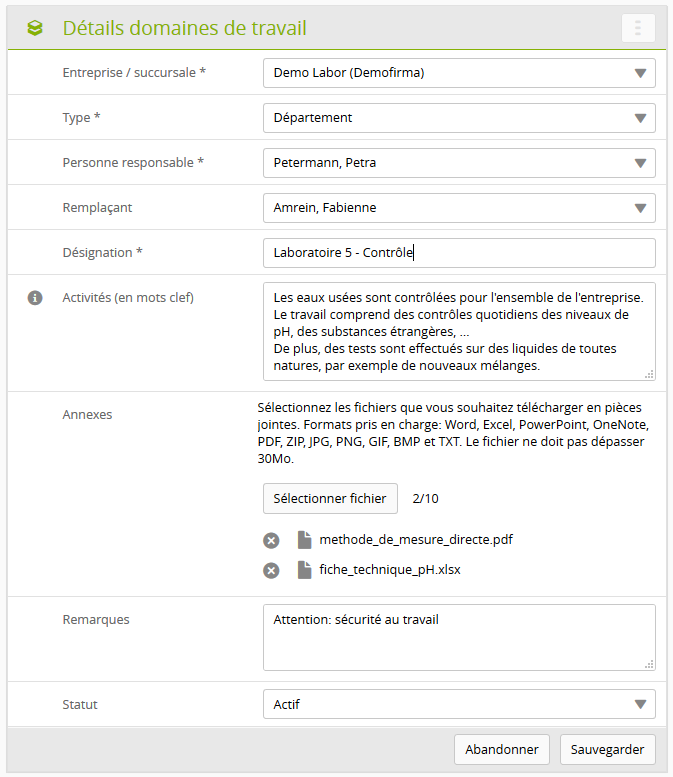 Le souhait a souvent été exprimé que des informations supplémentaires relatives aux différents domaines de travail puissent être enregistrées. Il est désormais possible de télécharger des documents relatifs aux différents domaines de travail (ou aux dates de cours, CI entreprises). En plus des activités saisies, l’apprenti voit également les fichiers joints.