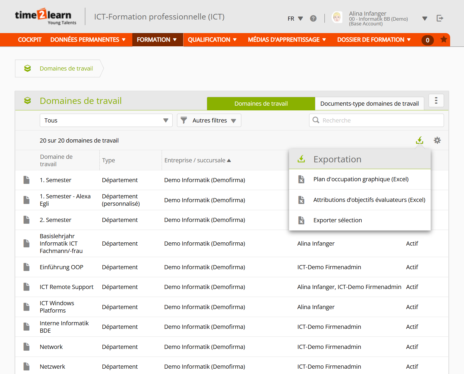 Grâce aux fonctions d'exportation et de reporting de time2learn, vous pouvez analyser en un clic :