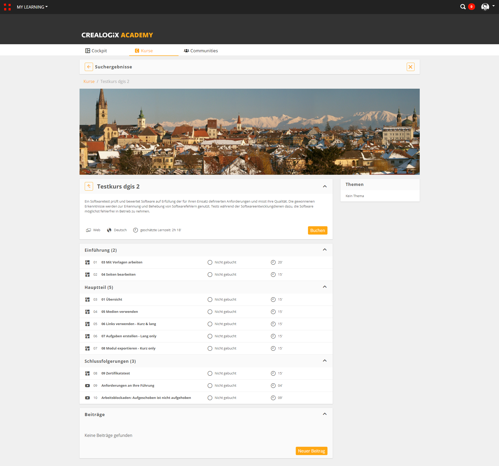 Sobald diese Einstellung aktiviert ist, erscheint der Kurs in der Mediathek – auch dann, wenn er den Lernenden noch nicht zugewiesen wurde. Die Lernenden können den Kurs anschließend über den Button „Buchen“ sich selbst zuweisen und direkt starten (bzw. sobald der Vorgesetzte die Buchung bestätigt hat).
