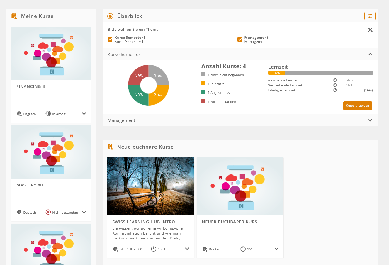 Das Cover Bild wird in allen Kursauflistungen angezeigt, wie z.B. im Cockpit oder Mediathek: