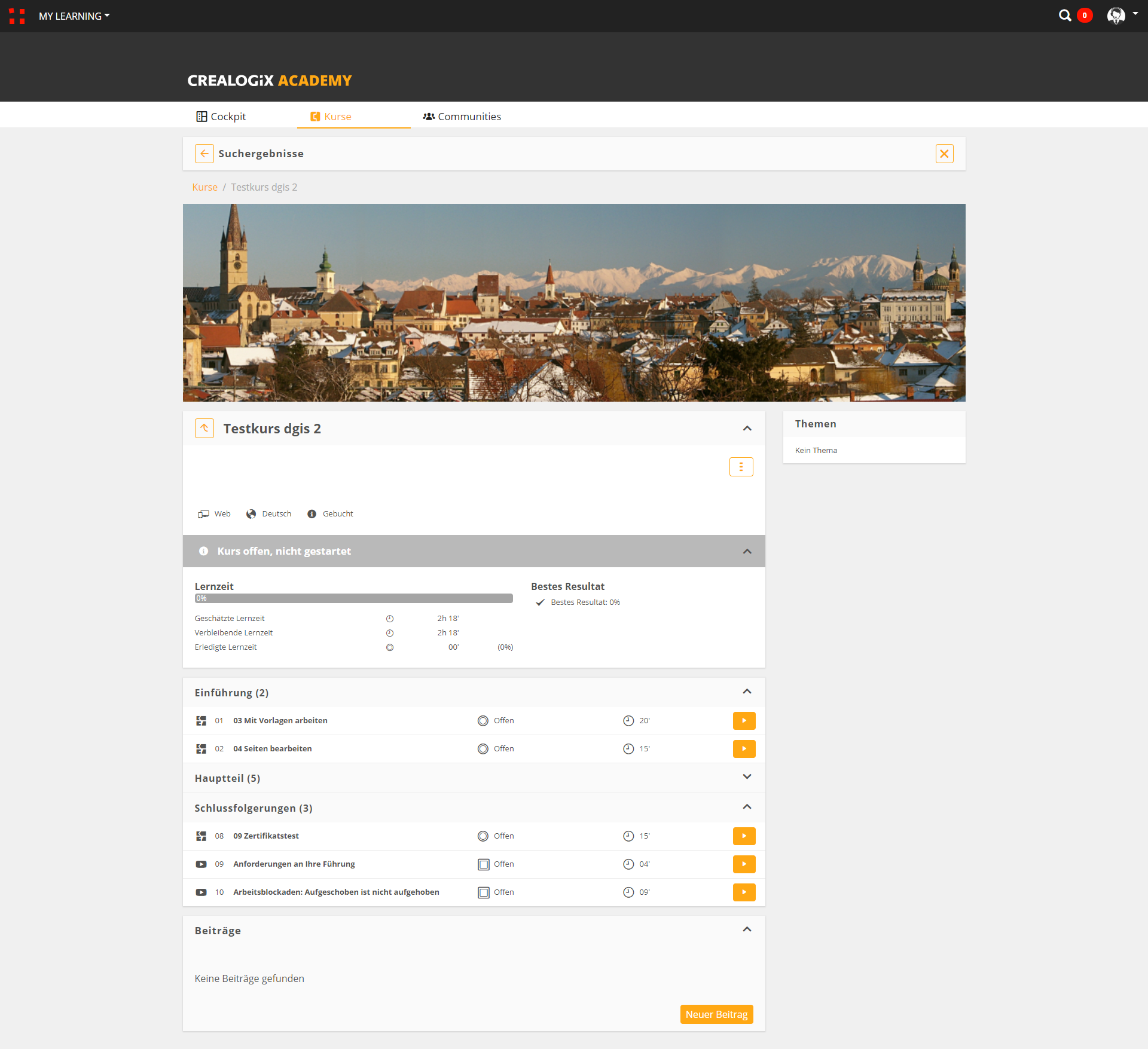 Diese Einteilung ermöglicht dem Lernenden die Detailseite des Kurses visuell zu organisieren: Er kann die noch nicht erreichten Abschnitte zusammenklappen und den erweiterten Bereich, in dem er gerade aktiv lernt, im Auge behalten.