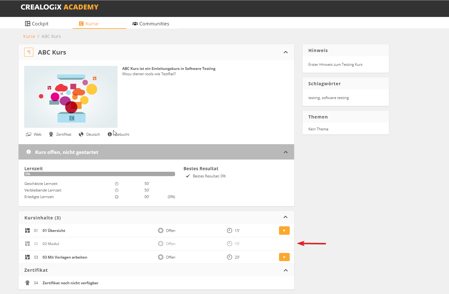 Jeder Kursinhalt kann einen der folgenden 3 Status haben: