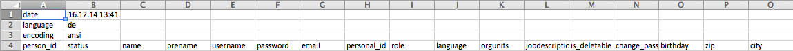 | date | Pflichtfeld | Zeigt an, wann die Datei exportiert wurde. Ist für den Import nicht relevant. |