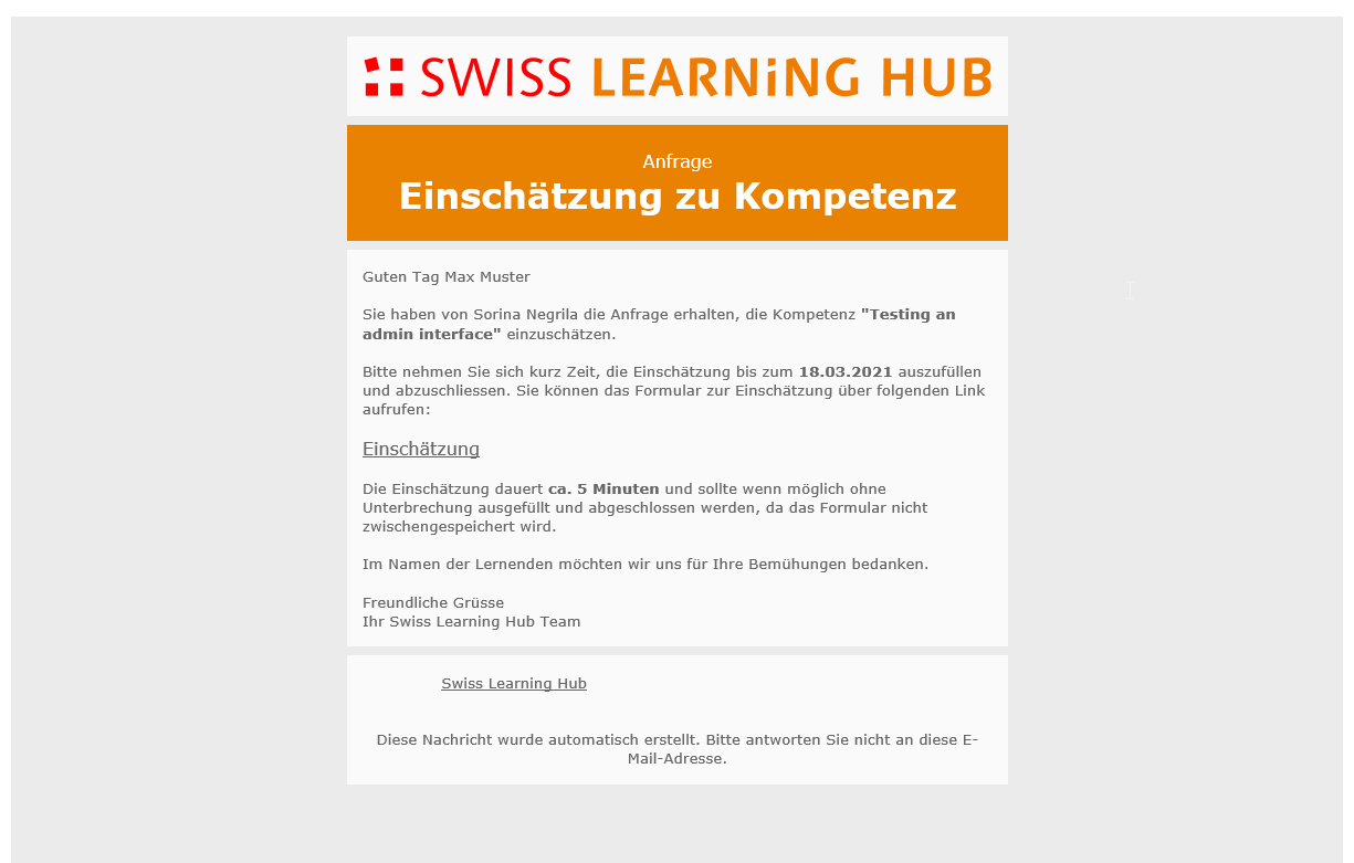 Die Person, die die E-Mail erhält, muss kein SLH-Benutzer sein - sie kann das Formular öffnen und die Bewertung in einem Durchgang ausfüllen.