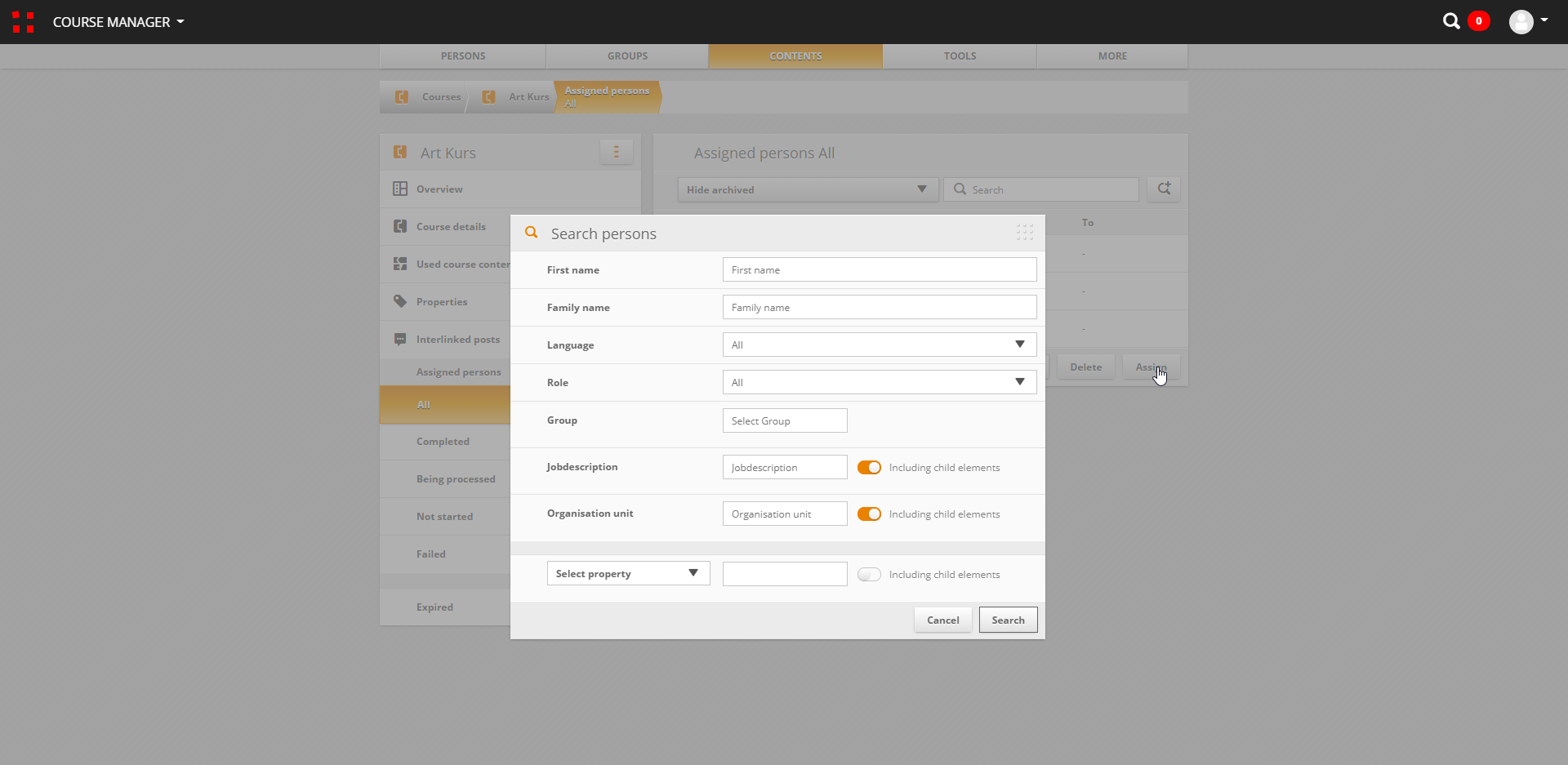 Sobald Sie einen Kurs über die Zuordung mit einem Skill verknüpft haben, müssen Sie den Kurs allen Lernenden zuweisen, die über das Jobprofil verfügen, in dem dieser Skill verknüpft ist. Klicken Sie also auf den Kurs und Sie können die Lernenden direkt dem Kurs zuordnen!