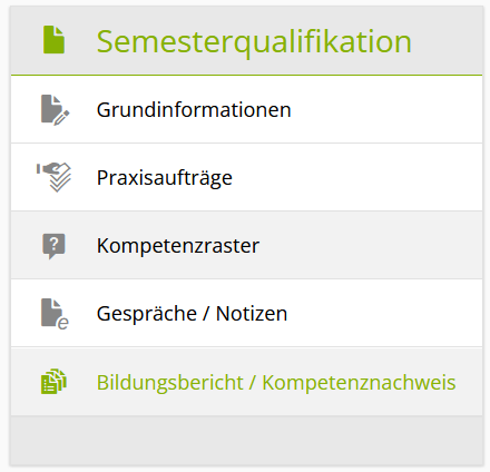 - Es werden alle geplanten oder schon erledigten Praxiaufträge des Lernenden in diesem Semester angezeigt.